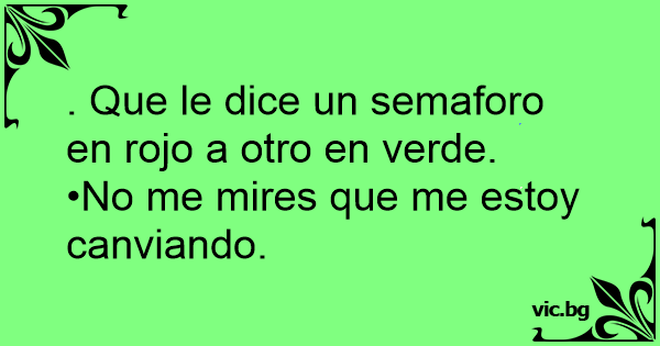 Cuanto Cabron Semaforos from statics.memondo.com Es decir en el segundo 27176 esta empezando el verde nuevamente y dura 45 seg hasta el segundo 27221, cambia a amarillo por seg hasta el seg 27225 y. Ooo verizon 4:21 pm 69% 891 anaranjado rojo amarillo verde 306 2 25 morado blanco gris azul we were so close to greatness yet so far. Enjoy the meme 'semaforo verde' uploaded by andregregorutti. El cantón mejía volvió a semáforo rojo. Tamaulipas tiene semáforo rojo en generación de empleo al segundo trimestre del año, y verde en la reducción de la informalidad, informó la asociación civil méxico, ¿cómo vamos?. A way of describing cultural information being shared. España, toda en rojo (y no es la única). The best site to see, rate and share funny memes!